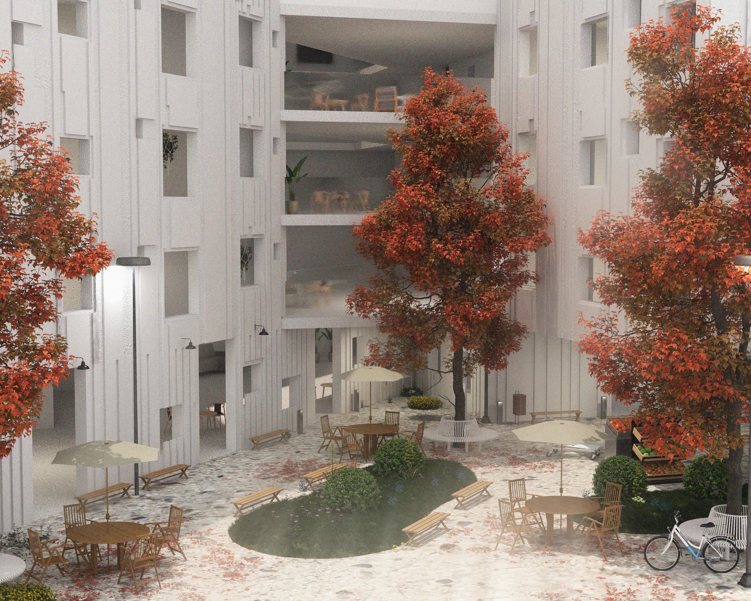 This project was completed third year during a housing studio. The dementia home, House For All, aims to design housing that is tailored not only for elderlies with dementia, but also as an opportunity to providing housing to medical students who volunteer at the residential building.
